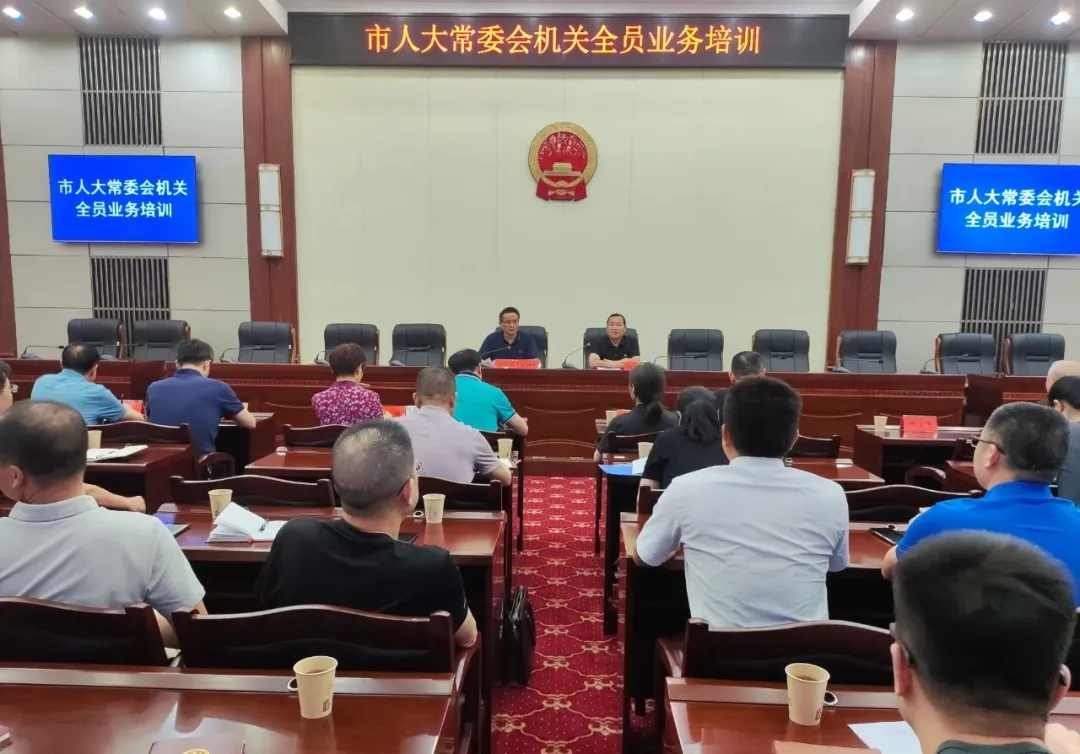 (2024年08月31日 08:37)按照市委“三个提升年”活动统一部署和市人大常委会机关全员业务培训具体安排,8月30日下午,市人大常委会机关开展2024年第四期全员业务培训。市人大常委会党组成员、副主任杨丽萍、陈伟志出席,市人大社会委副主任委员石科圣主讲,机关全体干职工参加,市委组织部派员指导。