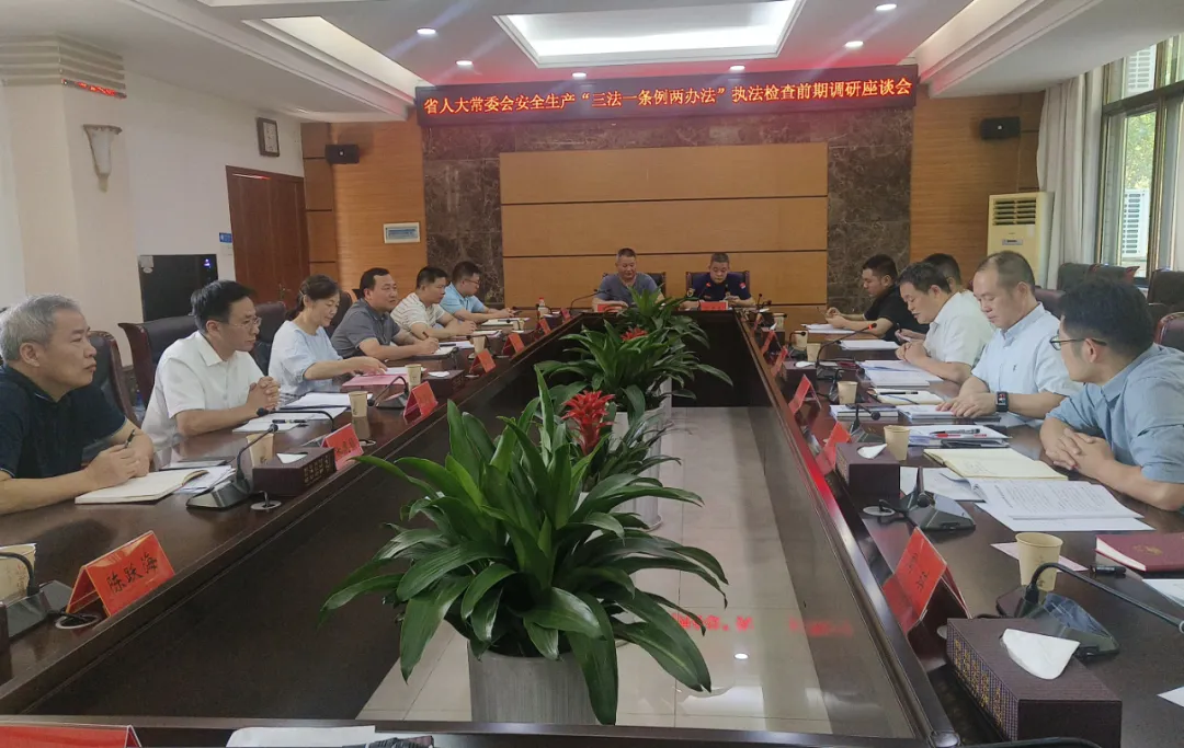 调研组要求,落实好安全生产“三法一条例两办法”,要从法的视角看安全,通过执法检查,把安全之弦绷得更紧,把整改之功抓得更严,把防护之网扎得更牢,把责任之链拧得更实,从源头上防范化解重大安全风险,筑牢守好安全生产的堤坝;要对照法律法规,进一步压实安全生产责任,狠抓工作落实,认真排查隐患,从根本上消除安全生产顽症痼疾,实现安全生产形势持续稳定向好;要依法定职责抓整改,做到检查从细、监督从严、整改从实,以实干实绩彰显法的威严、制度的优势。