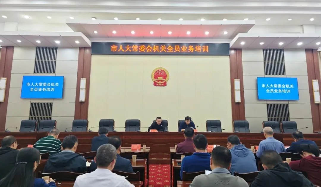 (2024年11月04日 09:02)按照市委“三个提升行动”统一部署和市人大常委会机关全员业务培训安排,10月31日下午,市人大常委会机关开展2024年第六期全员业务培训。市人大常委会党组成员、秘书长祁辉出席,市人大常委会副秘书长李斌主持,市人大环资委主任委员罗文主讲,机关全体干职工参加。