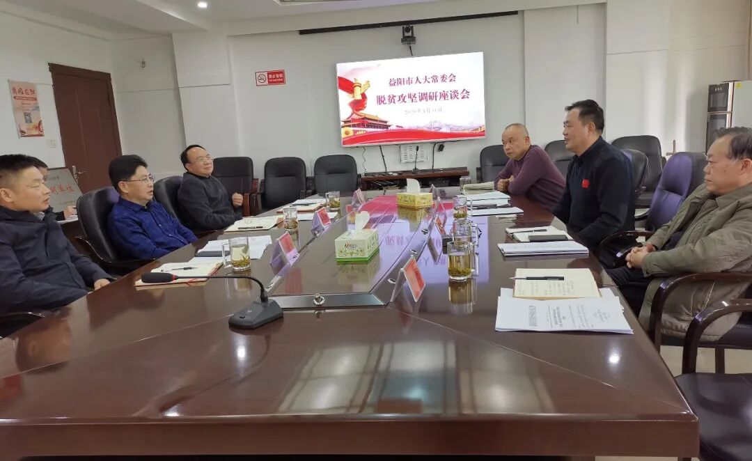 调研座谈会上,市扶贫开发办主任王光辉汇报了全市脱贫攻坚工作情况。近年来,我市坚定不移贯彻上级决策部署,把脱贫攻坚作为头等大事和第一民生工程,创新举措奋力攻坚,取得明显成效。安化县顺利脱贫摘帽,297个贫困村全部出列,贫困发生率降至0.35%。2017年脱贫攻坚工作在全省一类市州中排名第三,2018年获评全省先进,2019年省对市州重点工作绩效评估获得高分。
