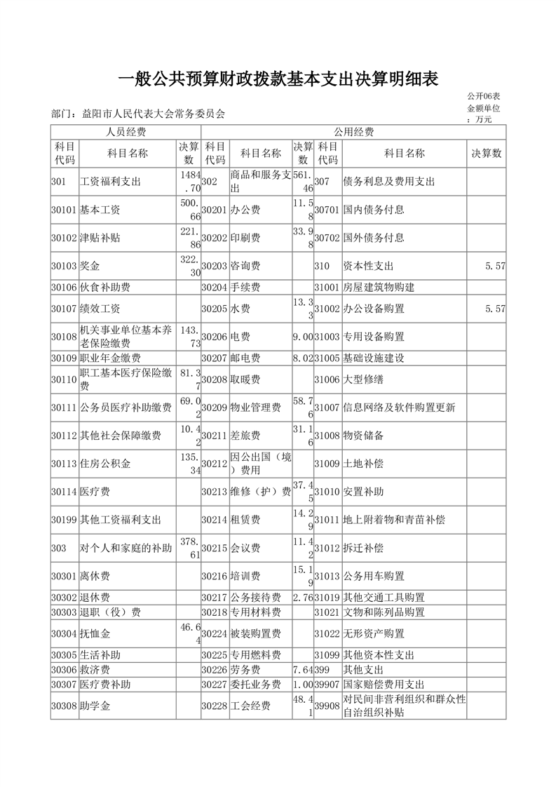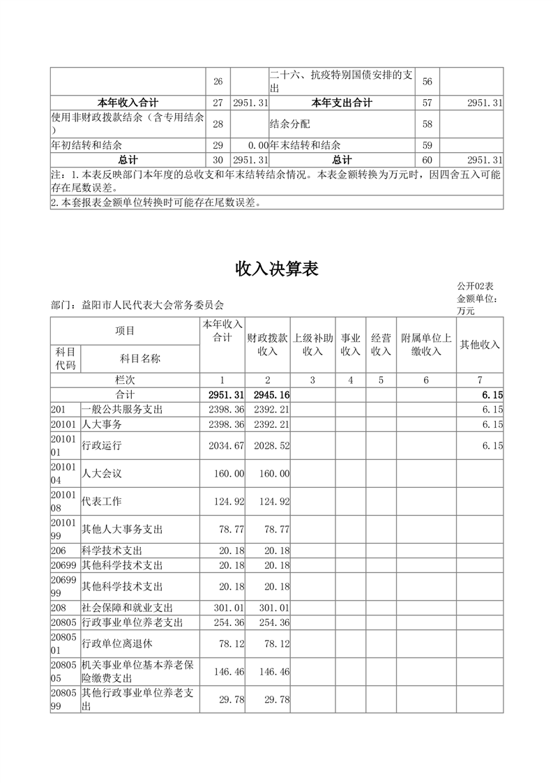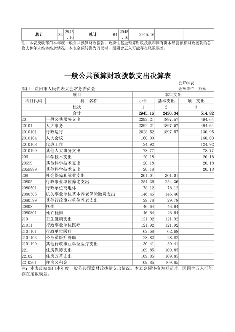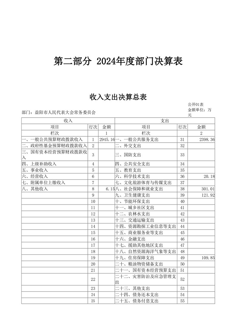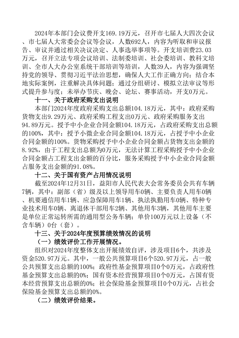 2024年度益阳市人民代表大会常务委员会部门决算