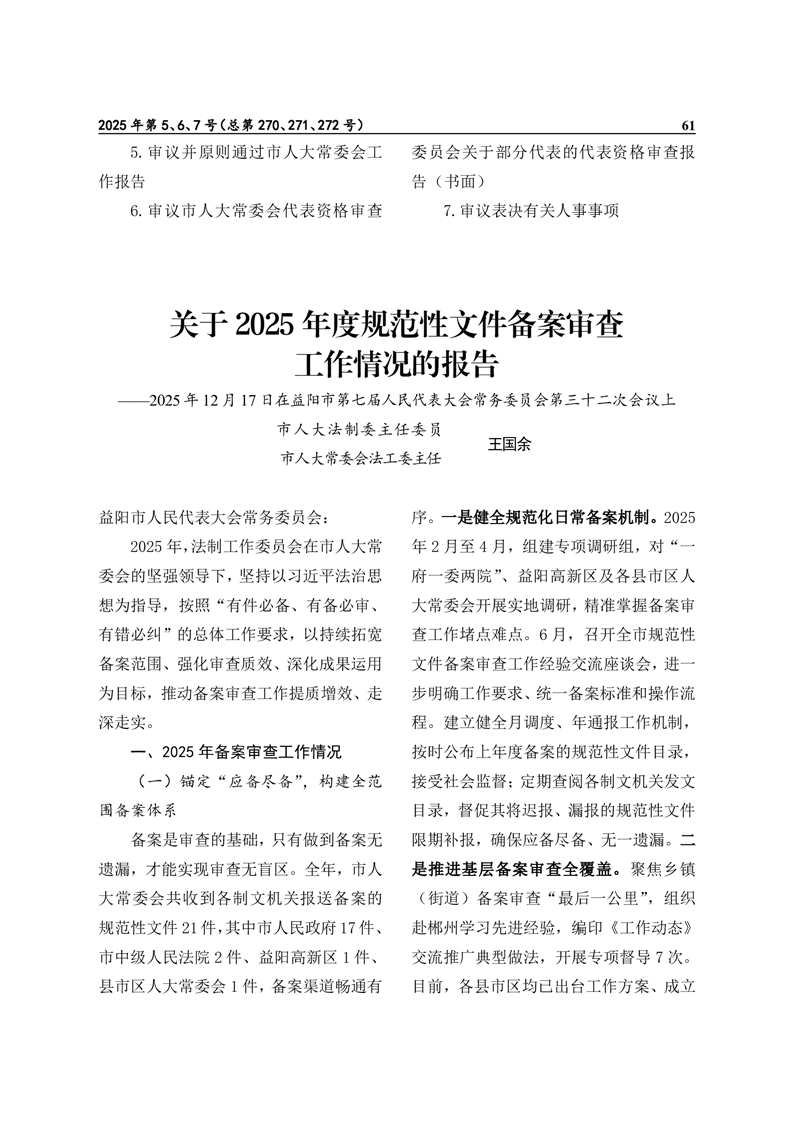 益阳市人民代表大会常务委员会公报 2025第8、9号