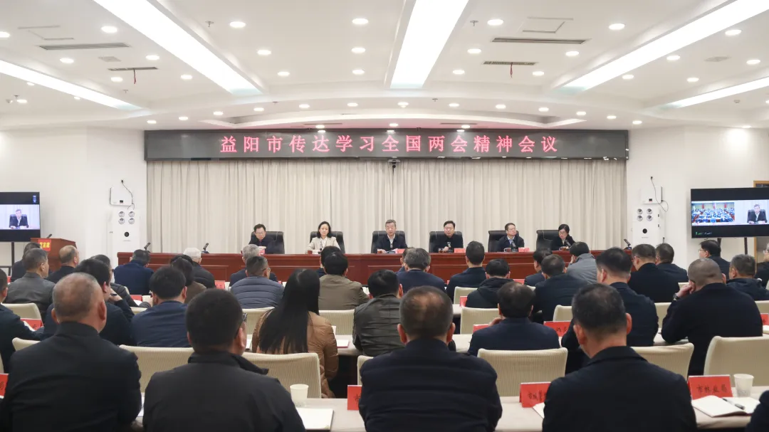 熊炜在主持时指出,要在传达学习上下功夫,及时、准确、全面将全国两会精神传达到广大基层干部群众中去,把思想和行动统一到党中央、国务院决策部署上来。要在转化落实上下功夫,立足益阳市情和工作实际,将全国两会明确的目标任务转化为信心决心、政策红利转化为具体项目、工作举措转化为发展实效。要在加快发展上下功夫,只争朝夕拼经济,用心用情惠民生,居安思危保平安,以起步就起势、开局就冲刺的精气神,全力以赴做好全年工作。