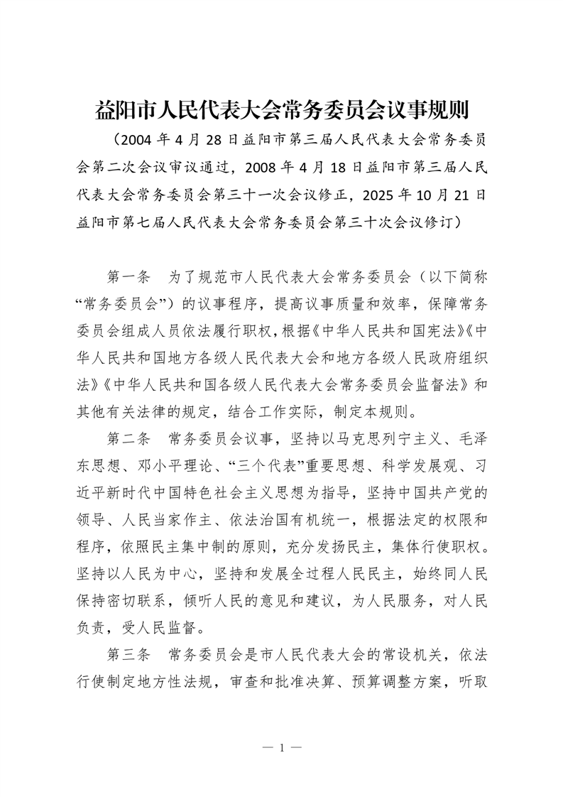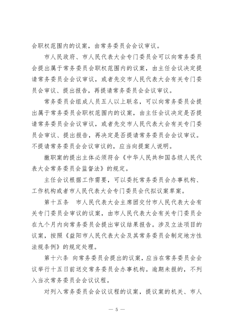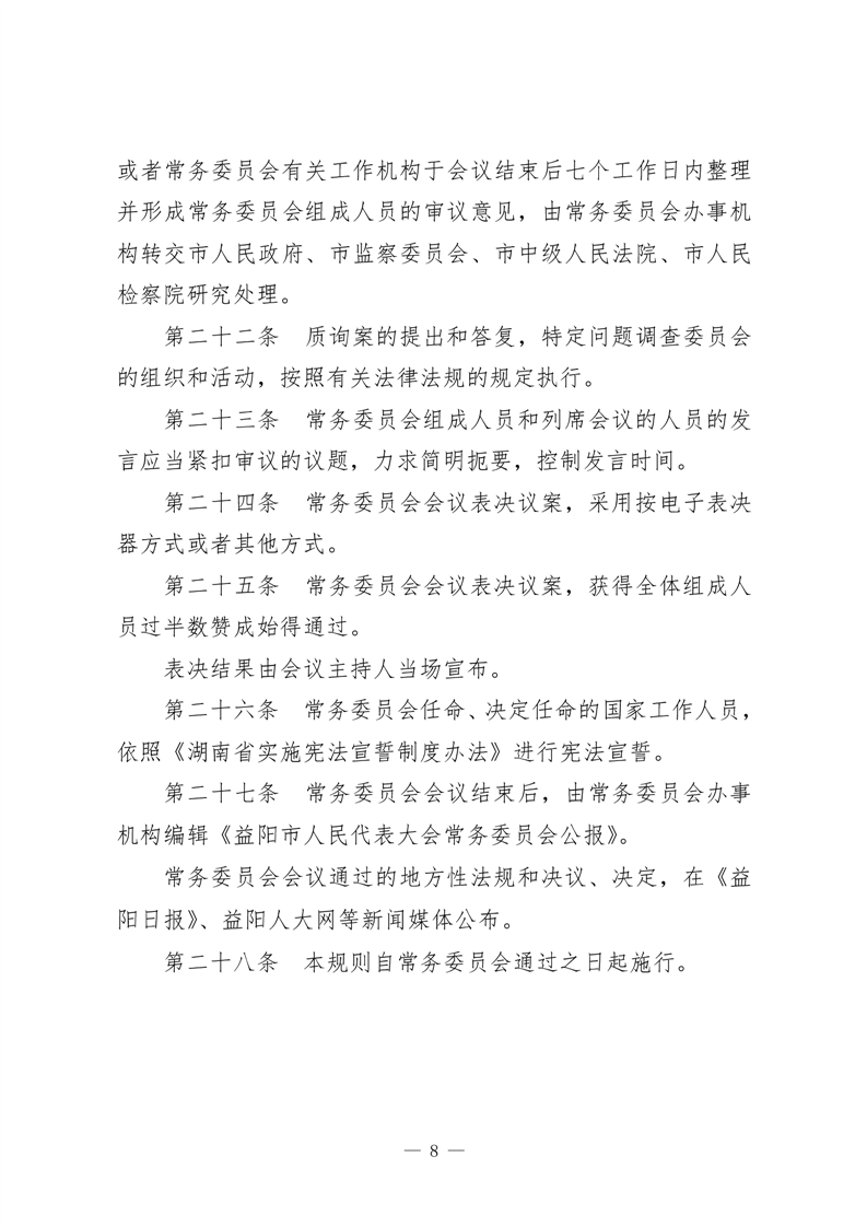 益阳市人民代表大会常务委员会议事规则