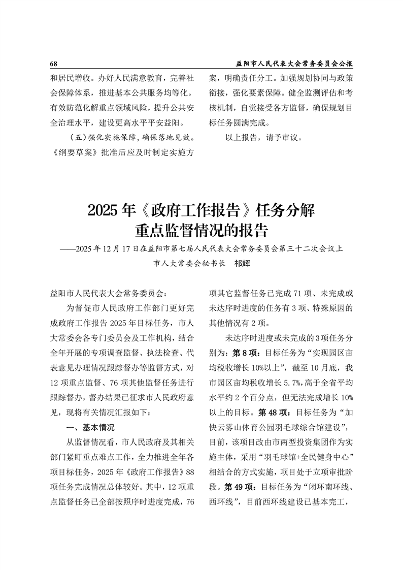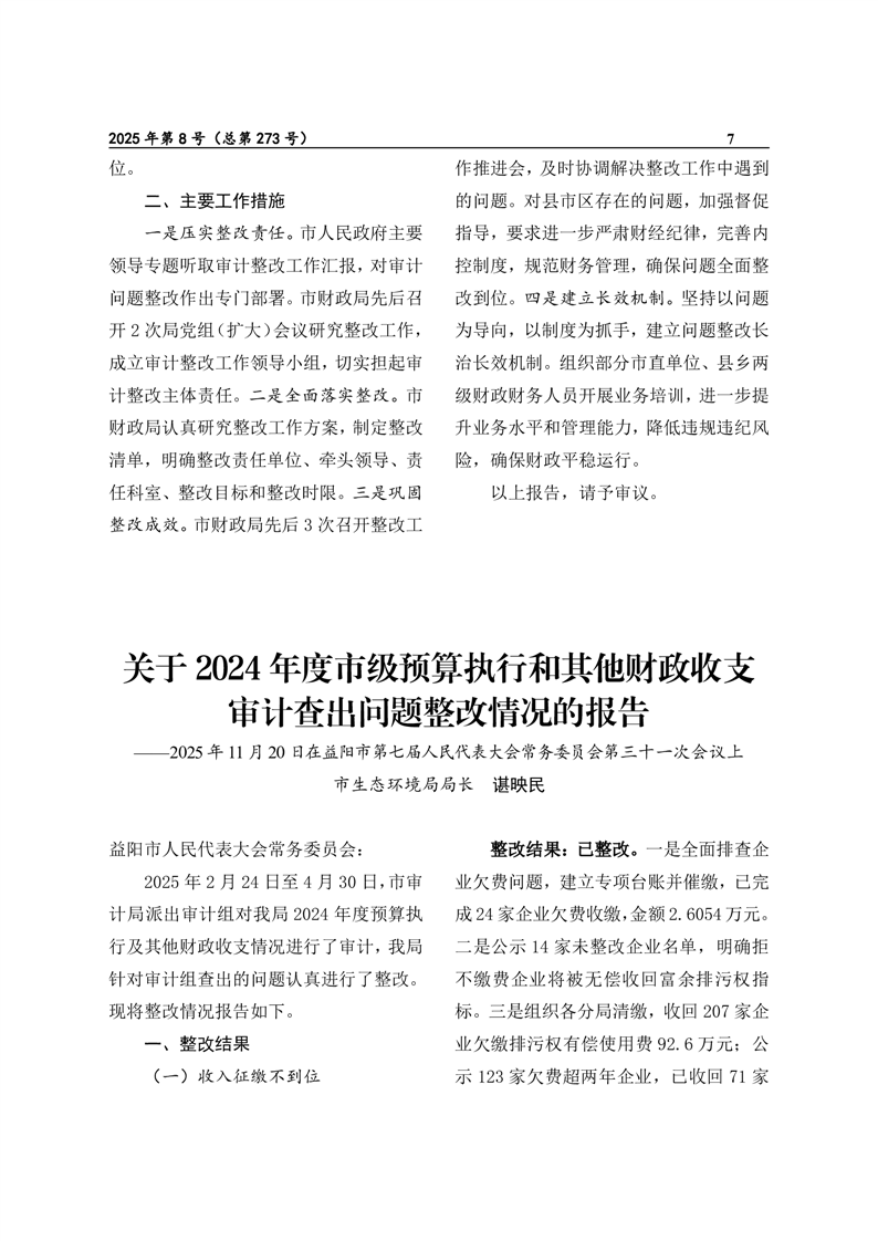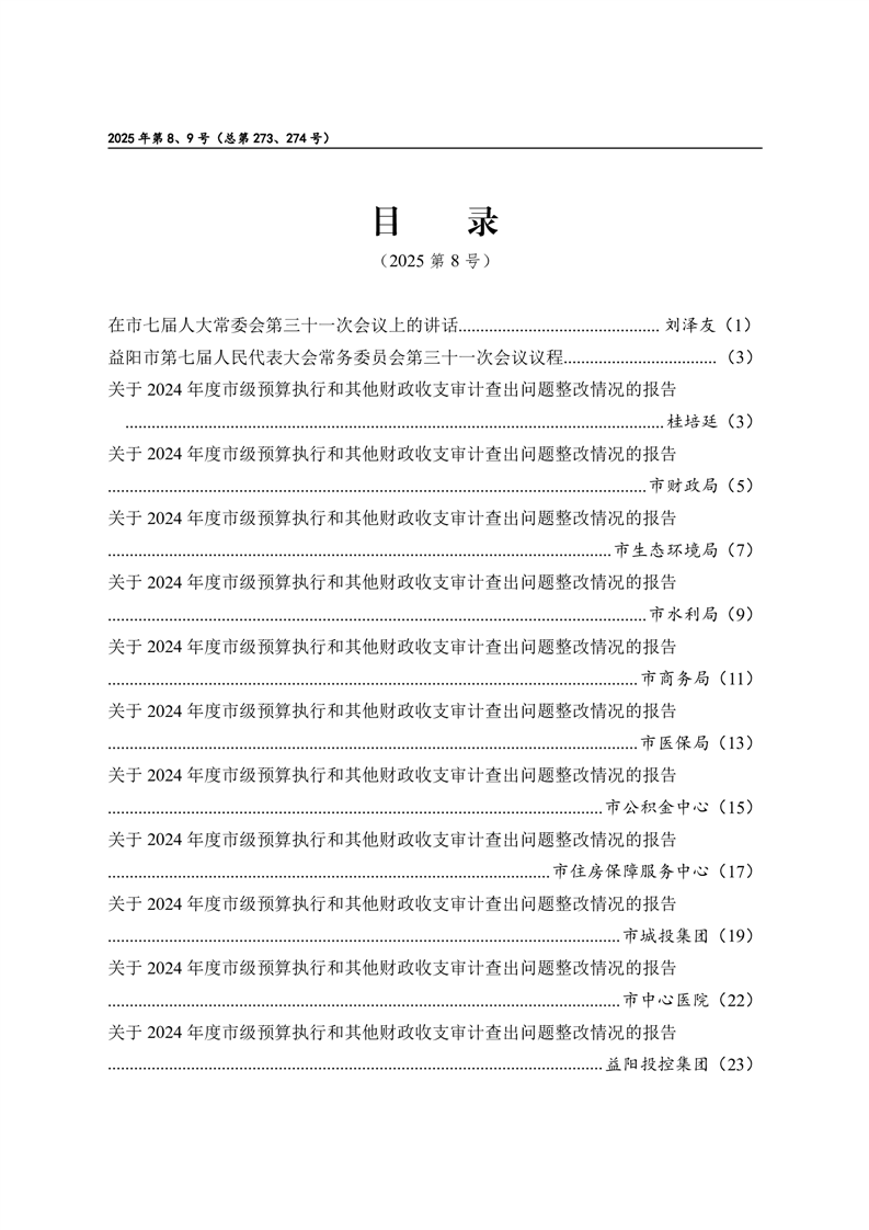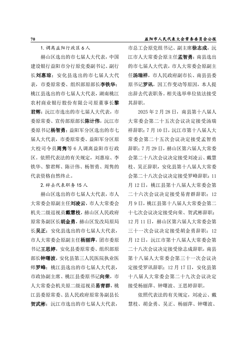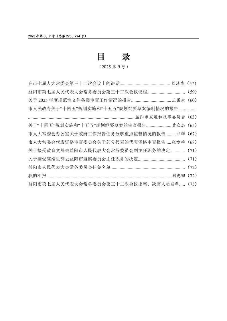 益阳市人民代表大会常务委员会公报 2025第8、9号